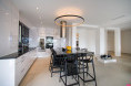 Entrée, cuisine entièrement équipée, salon, salle à manger, toilettes invités.